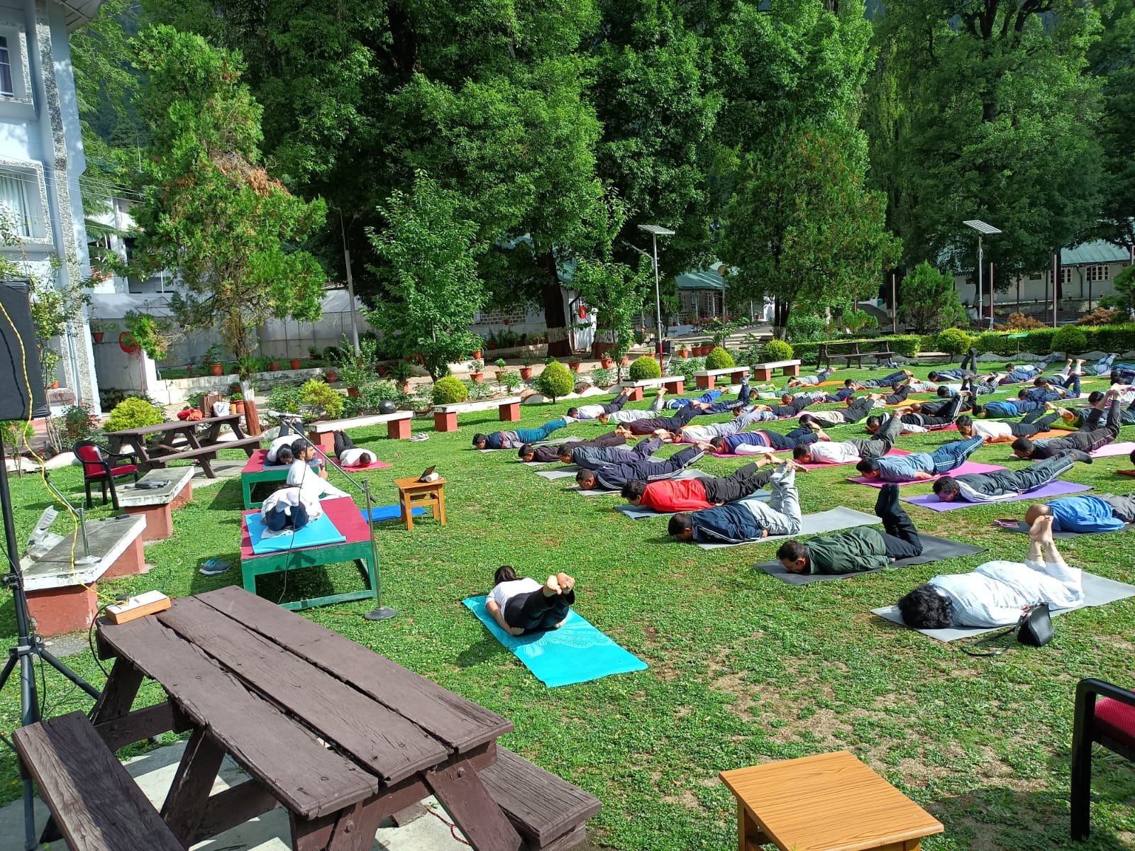 नैनीताल- डॉ. आर. एस. टोलिया उत्तराखण्ड प्रशासन अकादमी में 21 जून को अर्न्तराष्ट्रीय योग दिवस के अवसर पर आर्ट ऑफ लिविंग के सदस्यों द्वारा योगाभ्यास कराया गया। इस कार्यक्रम का शुभारंभ अकादमी के महानिदेशक श्री बी. पी. पाण्डेय द्वारा किया गया, श्री पाण्डेय द्वारा प्राचीन भारत की योग महत्ता पर प्रकाश डालते हुए स्वस्थ भारत की कामना की। तो वही कार्यक्रम के आयोजक अकादमी संयुक्त निदेशक प्रकाश चंद्र ने योग किया और अकादमी में प्रशिक्षण प्राप्त कर रहे सभी प्रशिक्षुओं को योग दिवस की शुभकामनाएं दी। इस कार्यक्रम की शोभा बढ़ाने के लिए आर्ट ऑफ लिविंग के संकाय सदस्य श्री दीपक गुप्ता ने प्रशिक्षुओं को योग के गुर सिखाए, उक्त कार्यक्रम में आर्ट ऑफ लिविंग के सहयोगी सुश्री कामना कम्बोज, सुश्री सुनीता वर्मा, श्री हिमांशु और सुश्री मानसी ने भी अपना योगदान दिया। इस योग कार्यक्रम में अकादमी संकाय सदस्य श्री दिनेश कुमार राणा, श्री एन एस नगन्याल,श्री वी. के. सिंह, डॉ. ओम प्रकाश, डॉ. मंजू पाण्डे आदि भी मौजूद रहे। इसके अलावा अकादमी कार्मिको ने भी योग दिवस पर बढ़ चढ़ कर हिस्सा लिया।